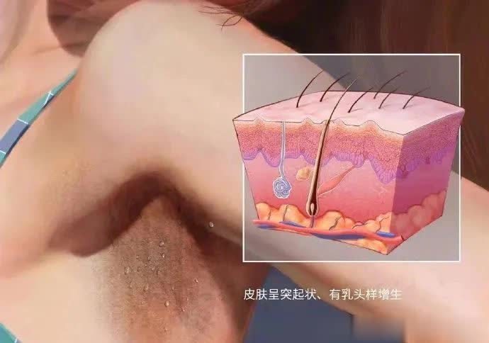 黑棘皮病是一种皮肤过度角化、增厚、色素过度沉着及以乳头瘤样增生为特征的皮肤病,这些“黑泥”比较青睐皮肤容易摩擦到的地方,比如颈部、腋窝等,总像“洗不干净”一样。有时它们也会出现在肘窝、乳房下、腹股沟、脐周等处。