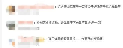 儿童群体的黑棘皮病多与肥胖、代谢异常有关。如上文中的小冲,他的腹围有110厘米,BMI(体质指数)高达32.57,空腹胰岛素水平是正常值的3倍,还被查出有高血压、高血脂、高尿酸血症、脂肪肝等代谢综合征相关症状。家里有“小胖墩”的家长,赶紧对照检查!